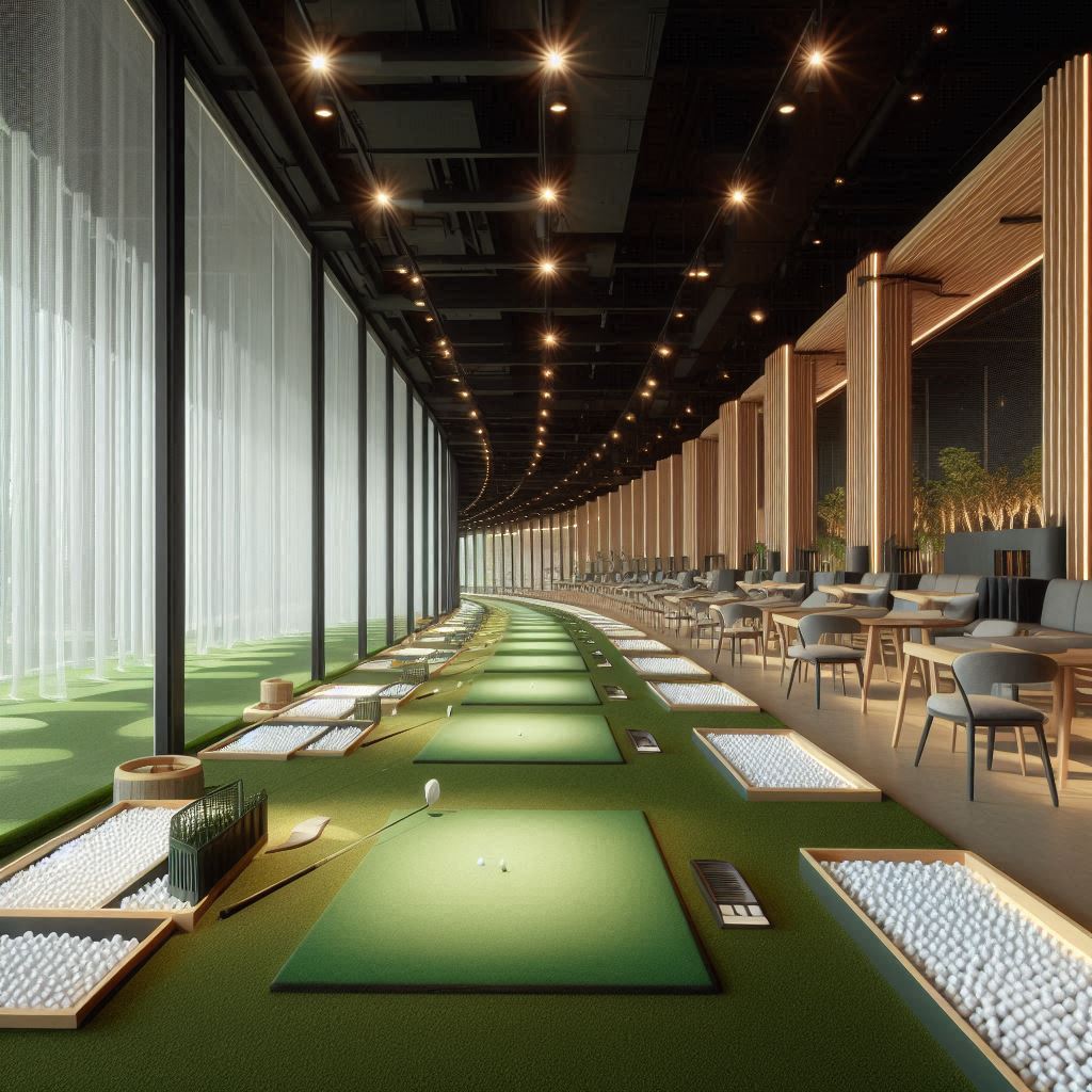 입구를 들어서면 전체적으로 블랙톤 인테리어에 따뜻한 간접조명이 조화를 이루고 있었습니다. 공간의 중심을 따라 타석이 일렬로 배치되어 있으며, 각 칸마다 스크린과 센서가 개별로 설치되어 있었습니다. 천장이 높아 드라이버를 휘둘러도 답답함이 없었고, 공이 날아가는 궤적이 시원하게 펼쳐졌습니다. 타석 앞 화면은 해상도가 높아 임팩트 순간이 명확히 보였고, 주변 조명이 밝지 않아 눈의 피로도 적었습니다. 코치가 타석을 오가며 회원의 자세를 확인하고, 세부 포인트를 짚어주는 모습이 인상적이었습니다. 대기 구역에는 라운지형 의자가 놓여 있었고, 연습 후 잠시 쉬기에 적당했습니다. 전체적으로 구조가 단순해 초보자도 쉽게 동선을 익힐 수 있는 공간이었습니다.