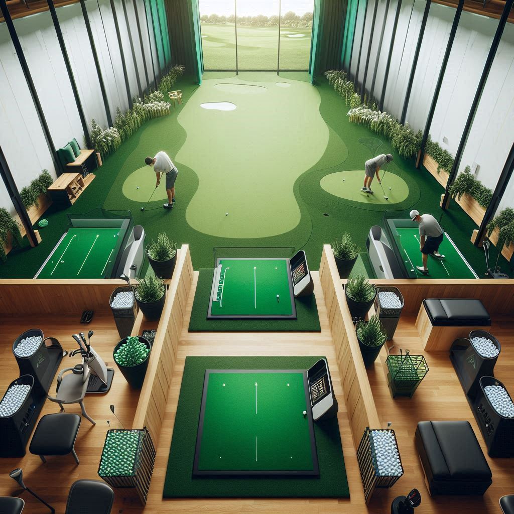 실내로 들어가면 깔끔하고 현대적인 시설이 인상적입니다. 각 연습 타석은 충분한 공간을 제공하여 편안하게 연습할 수 있도록 설계되어 있습니다. 실내는 넓고 쾌적하며 최신 장비들이 잘 갖춰져 있어 마치 PGA 투어 선수들이 사용하는 시설과도 견줄만합니다. 골프 연습장은 주로 예약제로 운영되며, 예약은 온라인으로 간편하게 할 수 있어 매우 편리합니다. 실내이기 때문에 비나 더위, 추위에 상관없이 언제든지 골프 연습을 즐길 수 있는 점이 큰 장점입니다. 또한, 시설 내에 휴식 공간과 드라이빙 레인지가 잘 마련되어 있어 쾌적하게 시간을 보낼 수 있습니다.