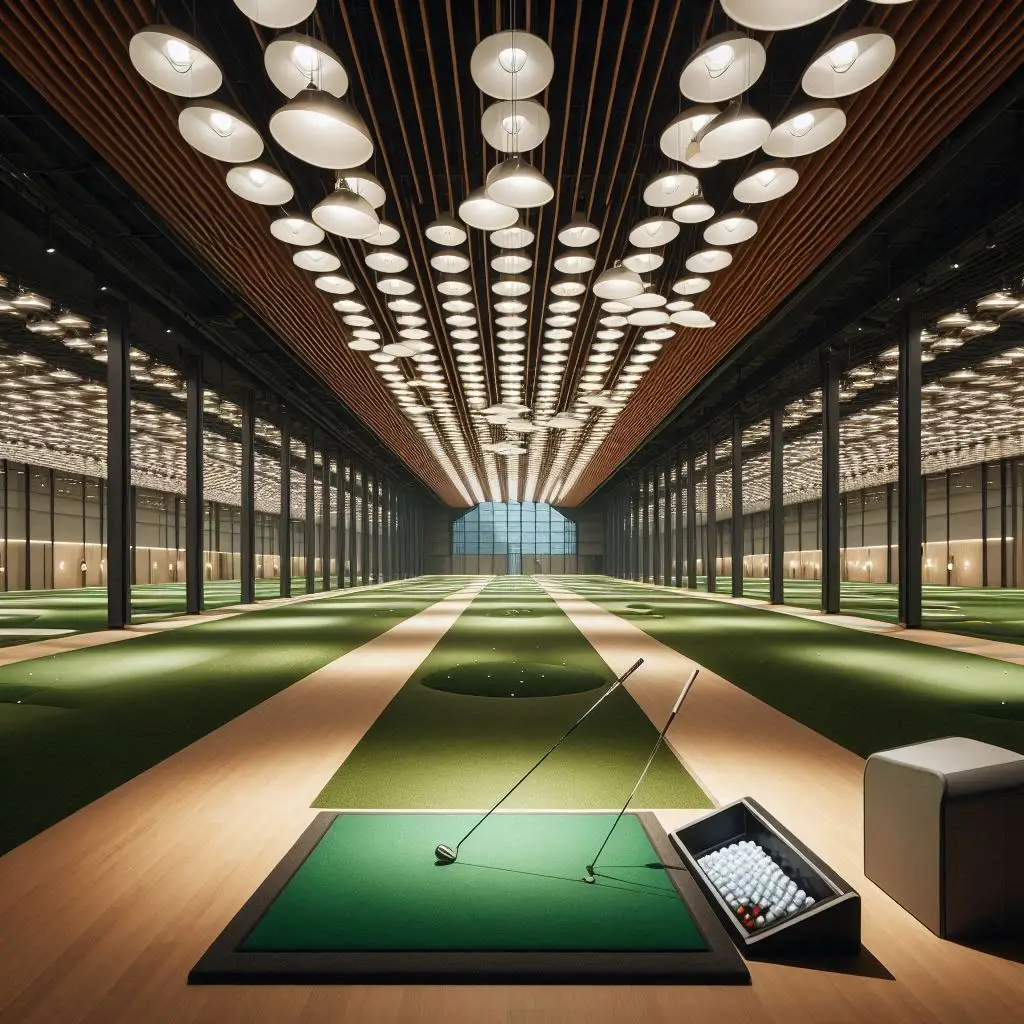 실내는 화이트와 다크 그레이톤이 조화를 이루며 세련된 분위기였습니다. 천장이 높고 타석 간 간격이 넓어 개방감이 느껴졌으며, 칸막이가 높아 프라이빗한 연습이 가능했습니다. 각 타석에는 최신형 GDR플러스 시스템이 설치되어 있었고, 스크린의 해상도가 높아 필드의 질감이 사실적으로 표현되었습니다. 조명 밝기가 일정하게 유지되어 눈의 피로가 적었고, 냉난방과 환기 시스템이 상시 작동해 쾌적했습니다. 타석 뒤편에는 소파와 커피머신이 마련된 휴게 공간이 있었으며, 정수기와 수건도 비치되어 있었습니다. 전체적으로 정돈되고 고급스러운 인테리어 덕분에 차분히 연습에 집중할 수 있었습니다.