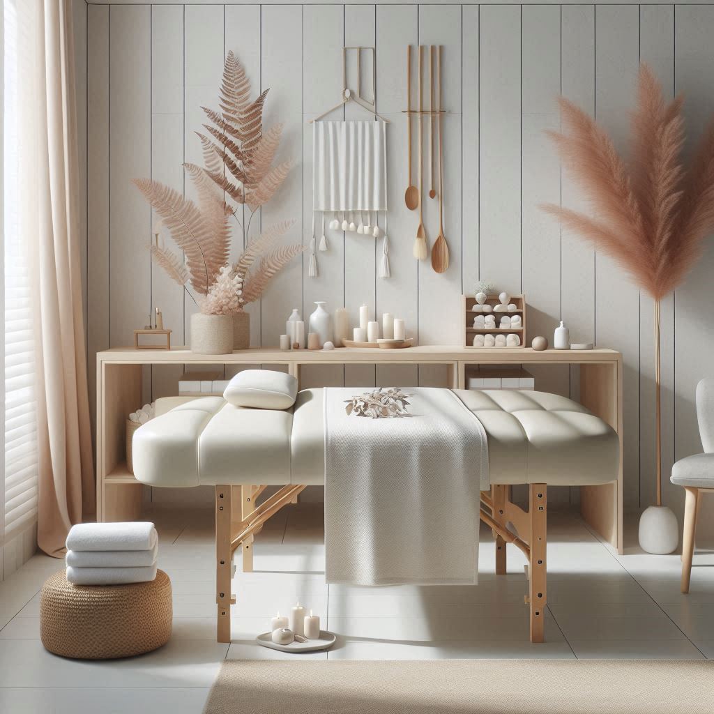 실내는 우드 톤과 화이트 색감이 조화를 이루며 편안한 느낌을 주었습니다. 대기 공간에는 따뜻한 차와 물티슈가 준비되어 있었고, 조명은 눈이 편안할 정도로 부드러웠습니다. 관리실은 커튼이 아닌 문으로 분리되어 사적인 공간이 확보되어 있었고, 온열 기능이 있는 침대가 준비되어 있었습니다. 수건은 깨끗하게 정리되어 있었으며, 공기청정기와 가습기가 작동 중이라 쾌적했습니다. 배경음으로는 잔잔한 피아노 선율이 흐르고 있었고, 공간 전체에 안정된 분위기가 감돌았습니다. 깔끔하면서도 포근한 인테리어가 인상적이었습니다.